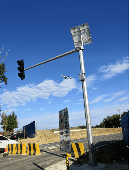 ,由于此路段不便走地下線,故此本次設(shè)計(jì)全部為太陽(yáng)能光伏發(fā)電,紅綠燈監(jiān)控桿安裝完成后將為機(jī)場(chǎng)周圍居民提供出行便利條件。